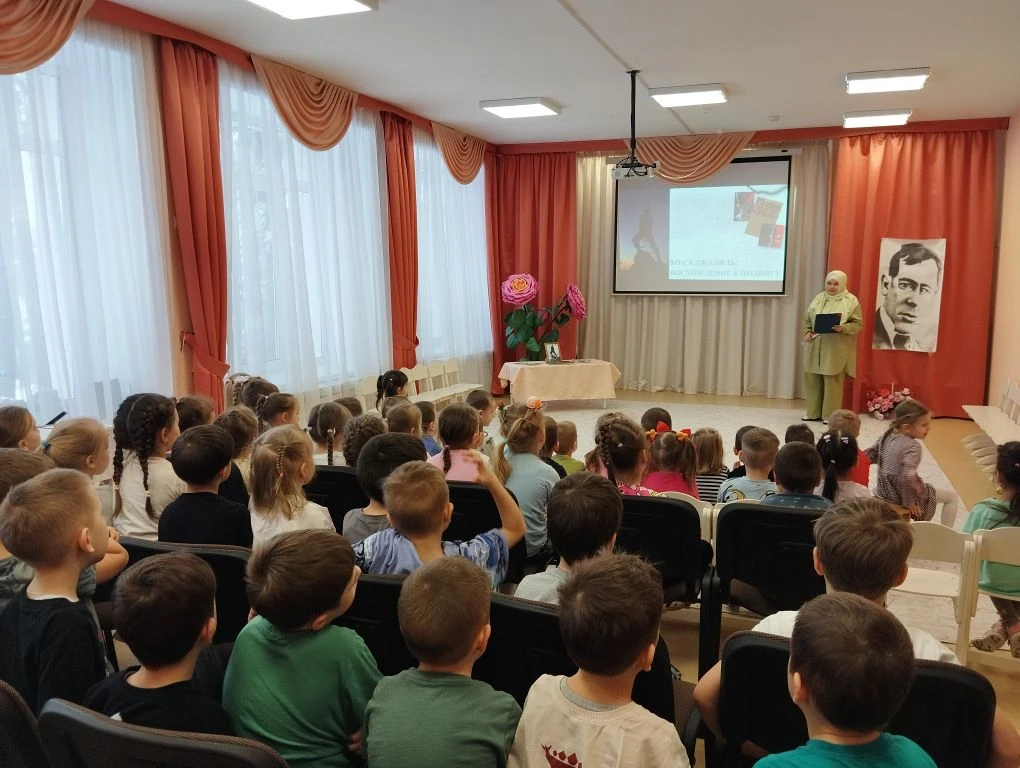 В детском саду прошёл единый тематический урок, посвящённый 120-летию со дня рождения Мусы Джалиля. Дети с удовольствием слушали рассказы воспитателей о жизни и творчестве поэта, играли в игры, смотрели мультфильмы, знакомились с его стихами и рисовали иллюстрации к любимым произведениям. Была организована выставка рисунков.