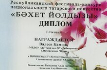 Поздравляем воспитанника «Детского сада №7 «Рябинушка» Валеева Камиля с победой в Республиканском фестивале - конкурсе национального татарского искусства «БӘХЕТ ЙОЛДЫЗЫ». Выражаем благодарность педагогам и родителям за подготовку Камиля в номинации «Художественное слово».