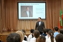 Почетным гостем урока стал Нурмухаметов Фанис Вагизович — депутат Государственного Совета Республики Татарстан седьмого созыва, генеральный директор АО «Казэнерго». В ходе встречи Фанис Вагизович поделился со старшеклассниками историей своего жизненного и профессионального пути.
