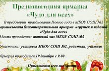 В целях оказания социальной поддержки детей, оказавшихся в трудной жизненной ситуации, продвижения идеи добровольчества - как важного ресурса решения социальных проблем, а также развития благотворительности на базе МБОУ СОШ №2 организована школьная благотворительная ярмарка игрушек и изделий новогодней тематики «Чудо для всех»