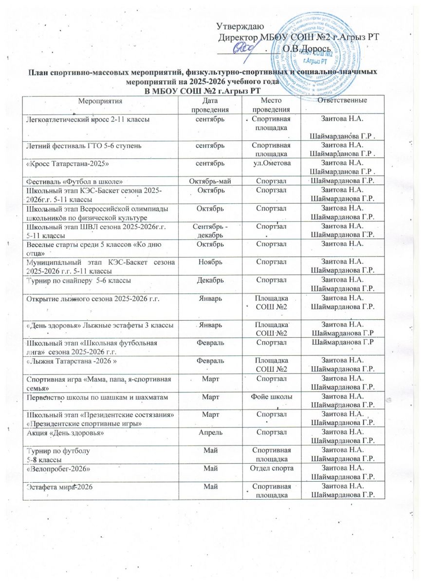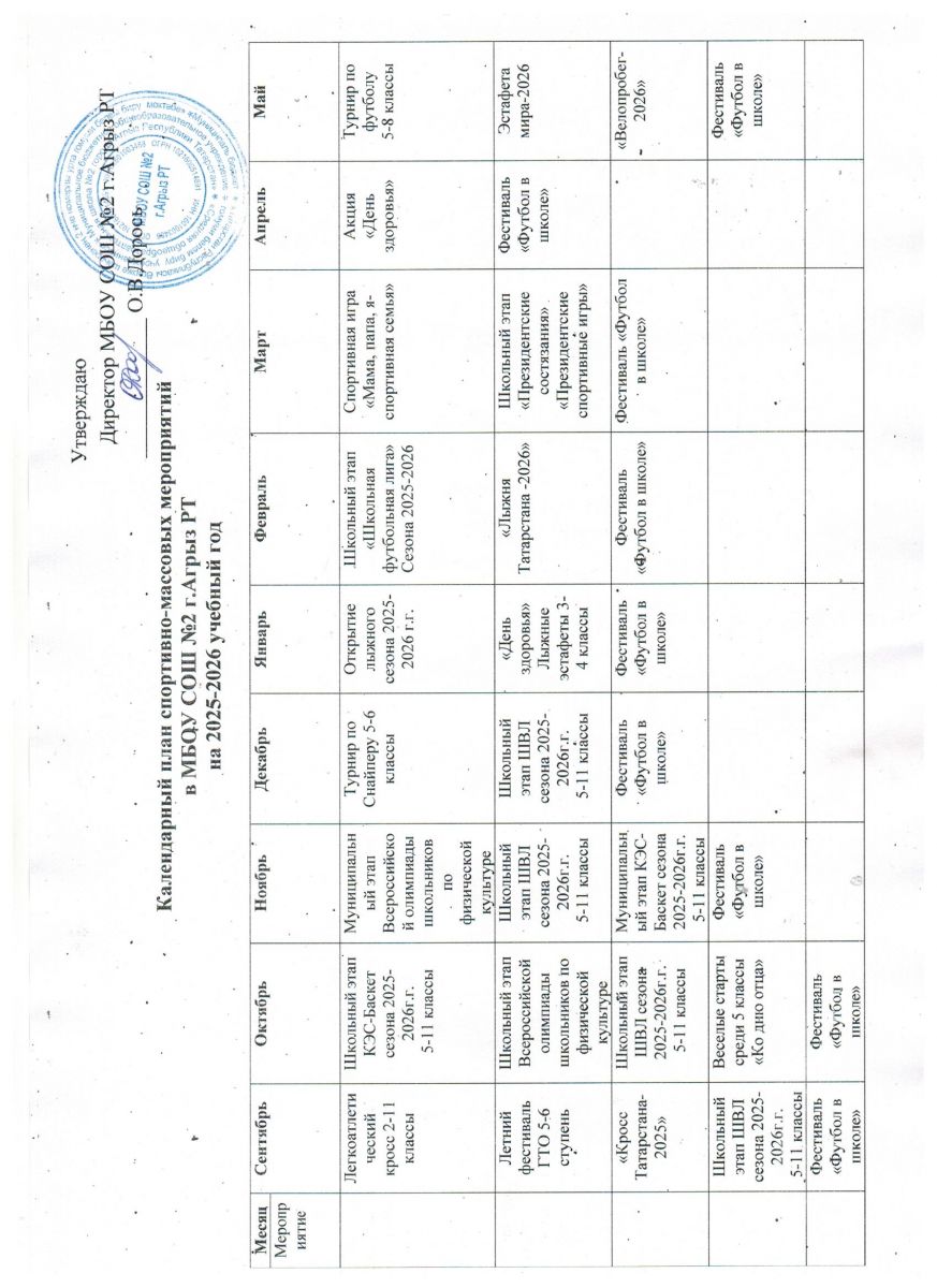 Календарный план спортиавно-массовых мероприятий в МБОУ СОШ № 2
