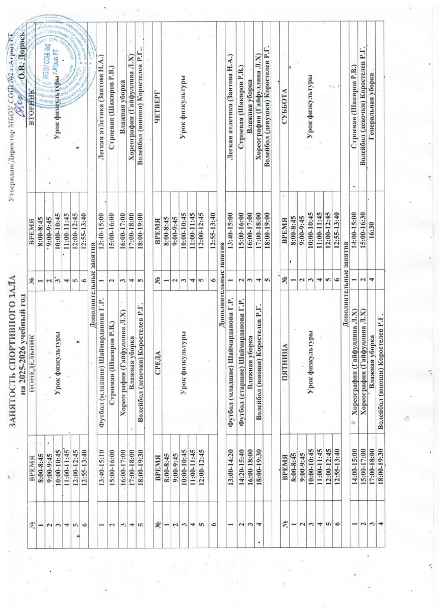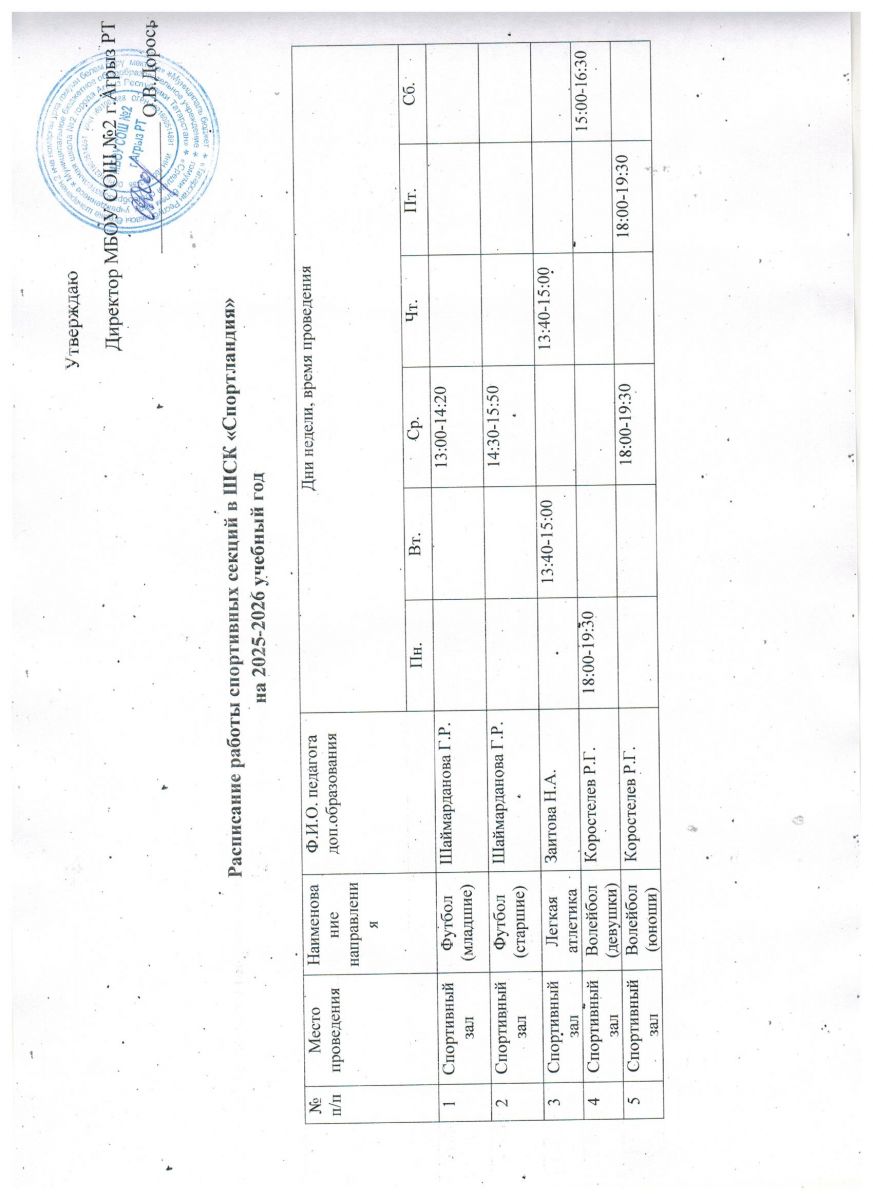 Расписание работы спортивных секций