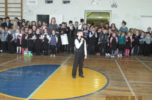 Спел песню "Наша армия" обладатель Гран-при, победитель в номинации "Находка года" Сухов Андрей - ученик 2в класса. Показала мастер-класс по строевой подготовке команда 8а класса, призеры конкурса "Снежный патруль" и "Строен в строю, силен в бою".