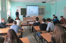 В школе прошла встреча с начальником отдела по организации приема студентов, ответственным секретарем приемной комиссии Уральского государственного университета путей сообщения Масловой Ириной Александровной. Она интересно рассказала об учебном заведении, о возможностях студентов, о дополнительных условиях приема. Был организован просмотр фильма. Ребятам были розданы спавочники первокурсника, газета магистраль.