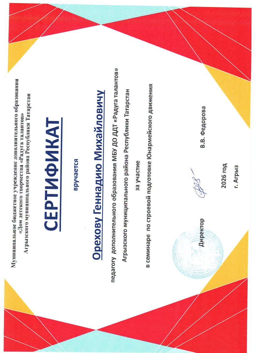 Сертификат за участие в семинаре ДДТ