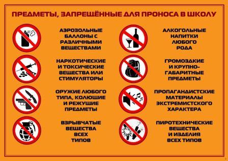 Перечень опасных веществ и предметов, запрещённых к проносу в школу