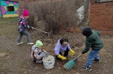 "Только вместе, только дружно, помогать природе нужно! ". Под таким девизом дети подготовительной группы вышли на субботник. -