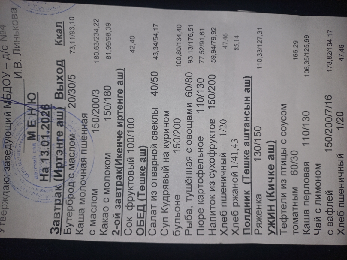 Ежедневное меню 13.01.2026