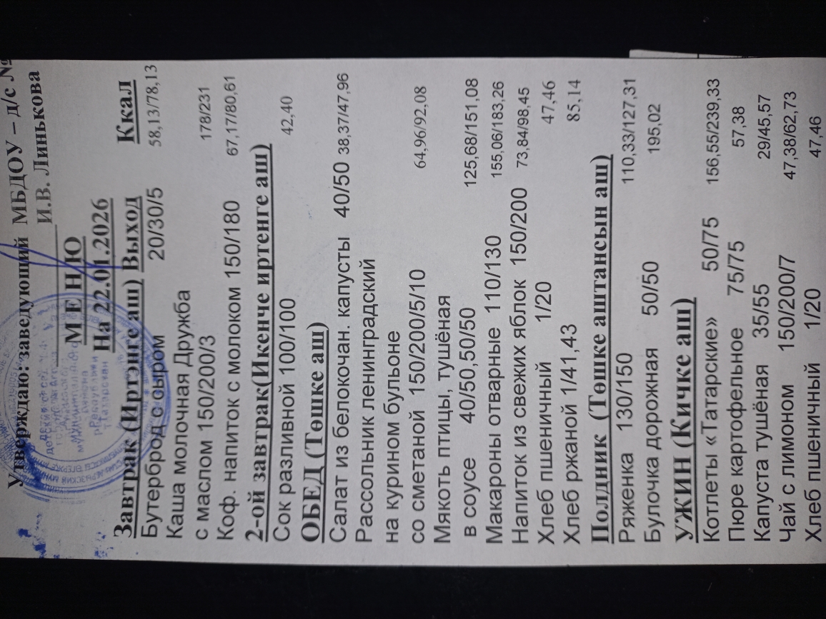 Ежедневное меню 22.01.2026
