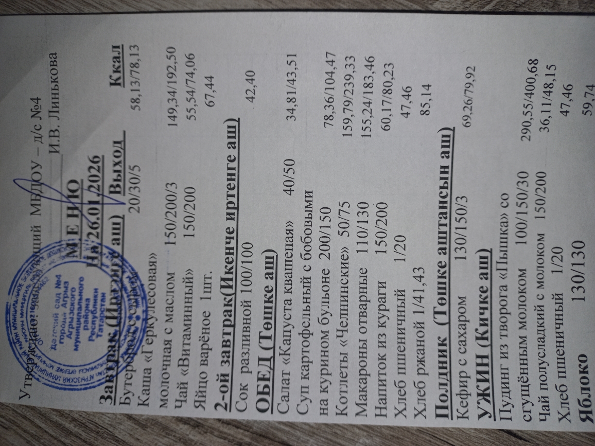 Ежедневное меню 26.01.2026