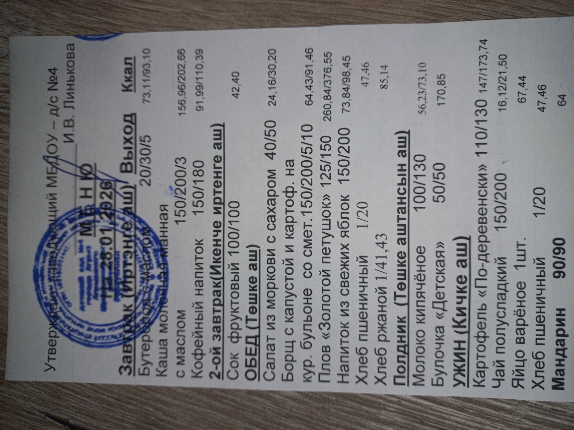 Ежедневное меню 28.01.2026