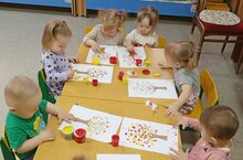 Сегодня в первой младшей группе №5 "Волшебная поляна" прошло занятие по рисованию пальчиками "Осеннее дерево". Дети с помощью своих пальчиков и красок рисовали листочки на деревьях (красного и жёлтого цвета),они с большим интересом выполняли задание.Маленькие художники остались очень довольны!Воспитатель: Абдрахманова И.Д.