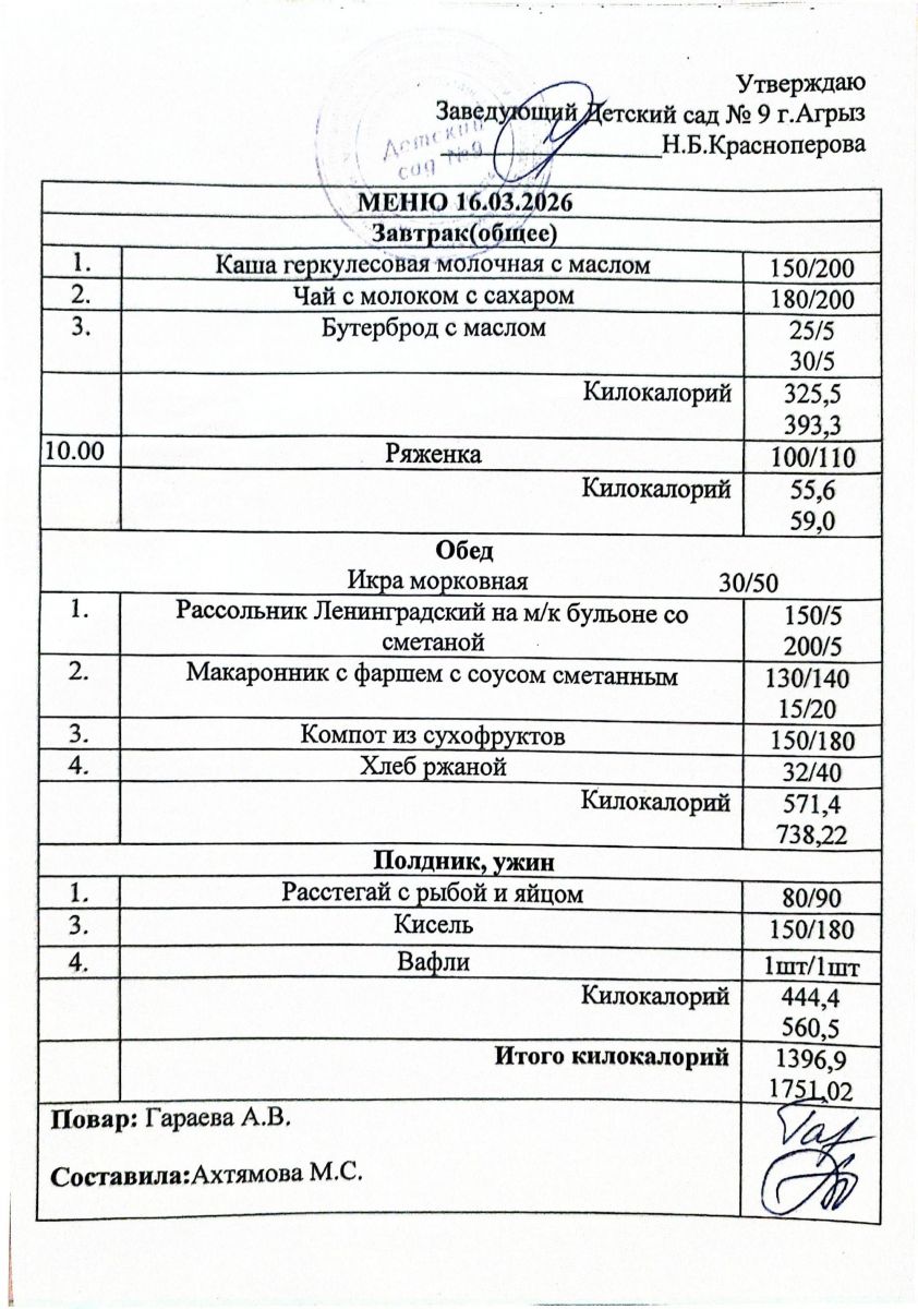 Март: Меню с 2.03.2026г по 6.03.2026г.