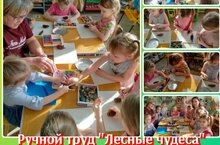 Дети средней группы №1 пригласили ребят средней группы №2 на ручной труд "Лесные чудеса", где изготовили поделку из природного материала.