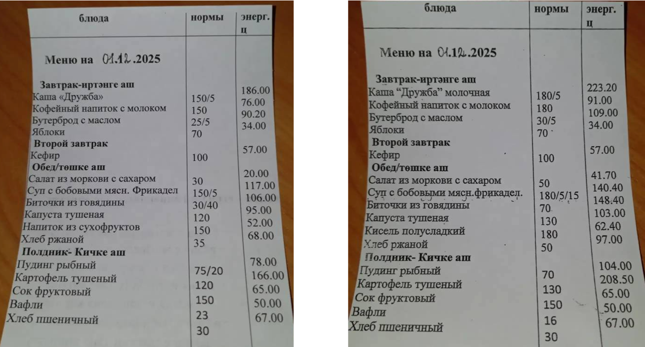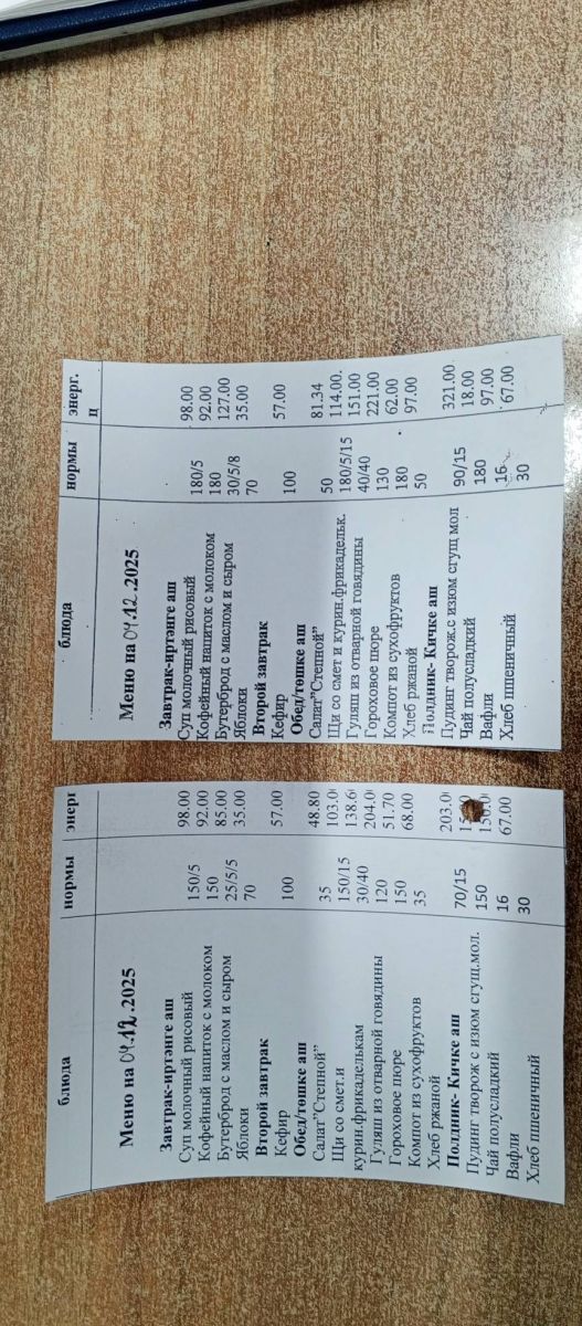 Меню на 1 декабря Меню на 2 декабря Меню на 3 декабря Меню на 4 декабря