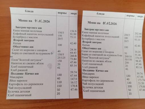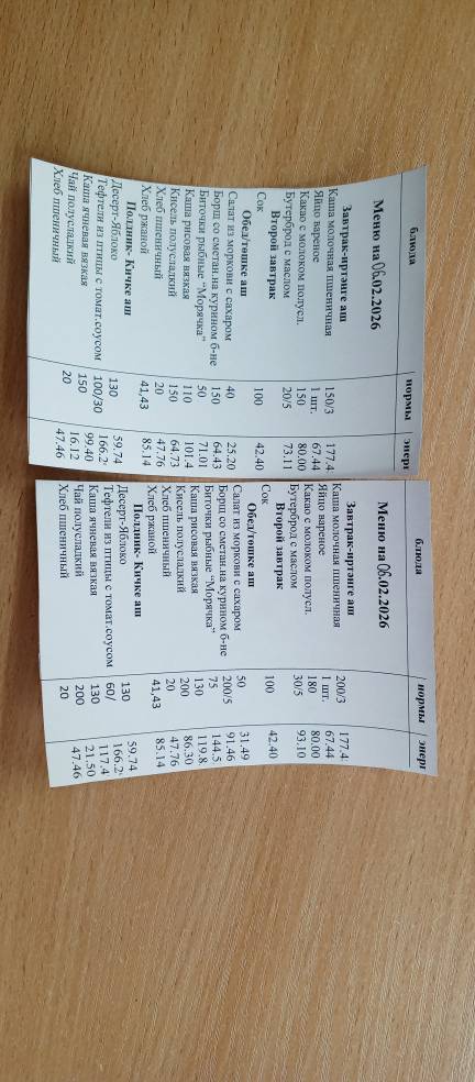 Меню на 11 февраля Меню на 12 февраля Меню на 13 февраля Меню на 16 февраля