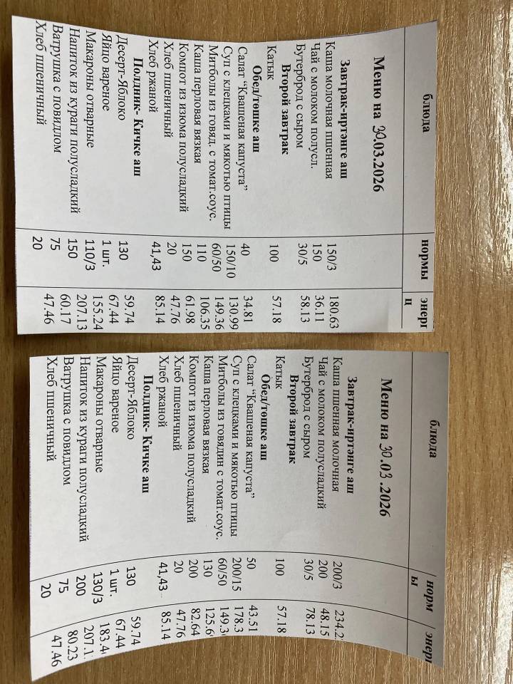 Меню на 26 марта Меню на 30 марта Меню на 31 марта Меню на 1 апреля Меню на 2апреля