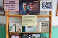 Библиотекарем школы организована выставка по данной тематике. На переманах ученикик отвечали на вопросы викторины «55 вопросов к 55 летию полета Ю.А.Гагарина» по фильму «Белое солнце пустыни».
