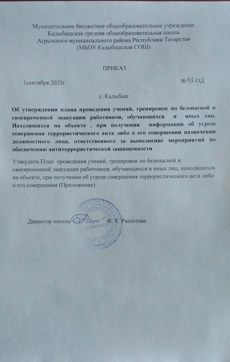Муниципальное бюджетное общеобразовательное учреждение Кадыбашская средняя общеобразовательная школа Агрызского муниципального района Республики Татарстан