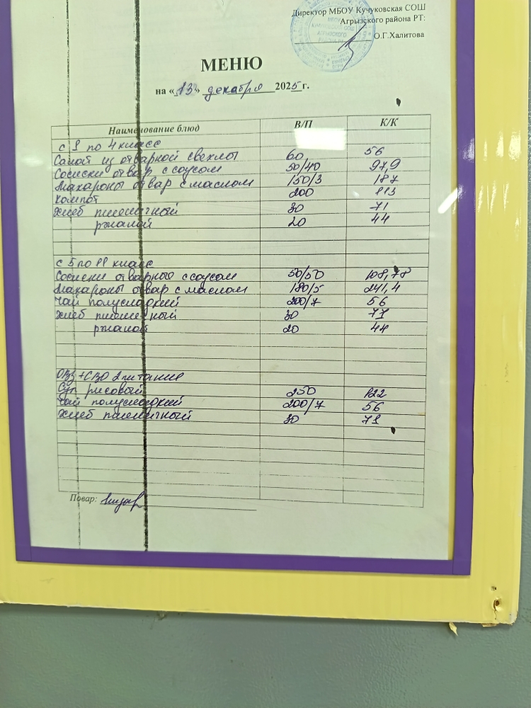 -наличие ежедневного меню на сайте школы и на информационном стенде.