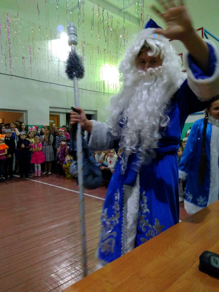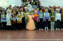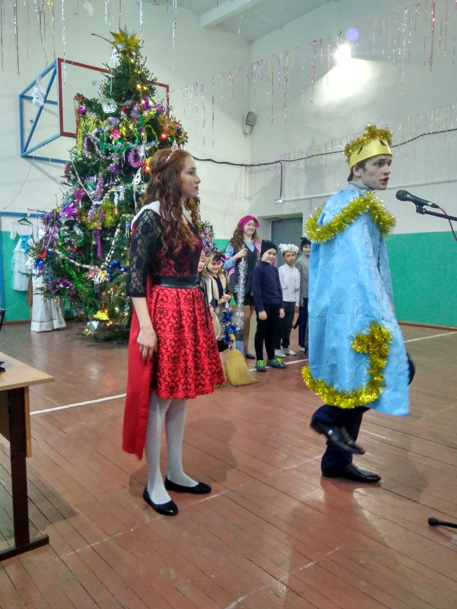 В школе проходят Новогодние праздники. На Новогодний бал пришли герои сказок. Король с принцессой, Хоттабыч, змей Горыныч, Баба-Яга, Емеля, Золушка и Дед Мороз со Снегурочкой. С годом Собаки! Будьте мудрее! Преданны будьте всегда и верны. И на душе станет сразу светлее. Ведь эти качества свыше даны! С Новым Годом, друзья!