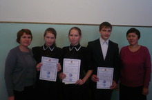 21 декабря члены НОУ "Юный исследователь" : Назмиев Нияз ( 8 класс), Михайлова Алина (9 класс), Михайлова Анастасия (8 класс) в г.Н.Челны выступили с исследовательскими работами в Республиканской НПК "Молодежь в научном поиске" на секции "Общественные науки". Им были вручены свидетельства МО и Н РТ.