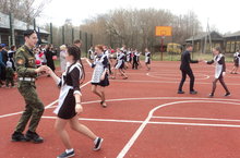 В рамках Всероссийского проекта "Шаги Победы" общешкольный Вальс Победы. 09.05.2018