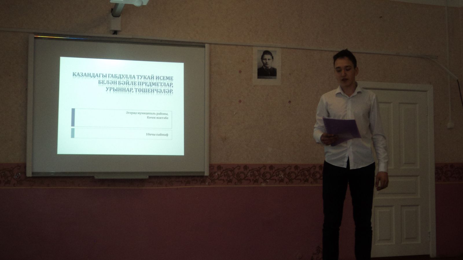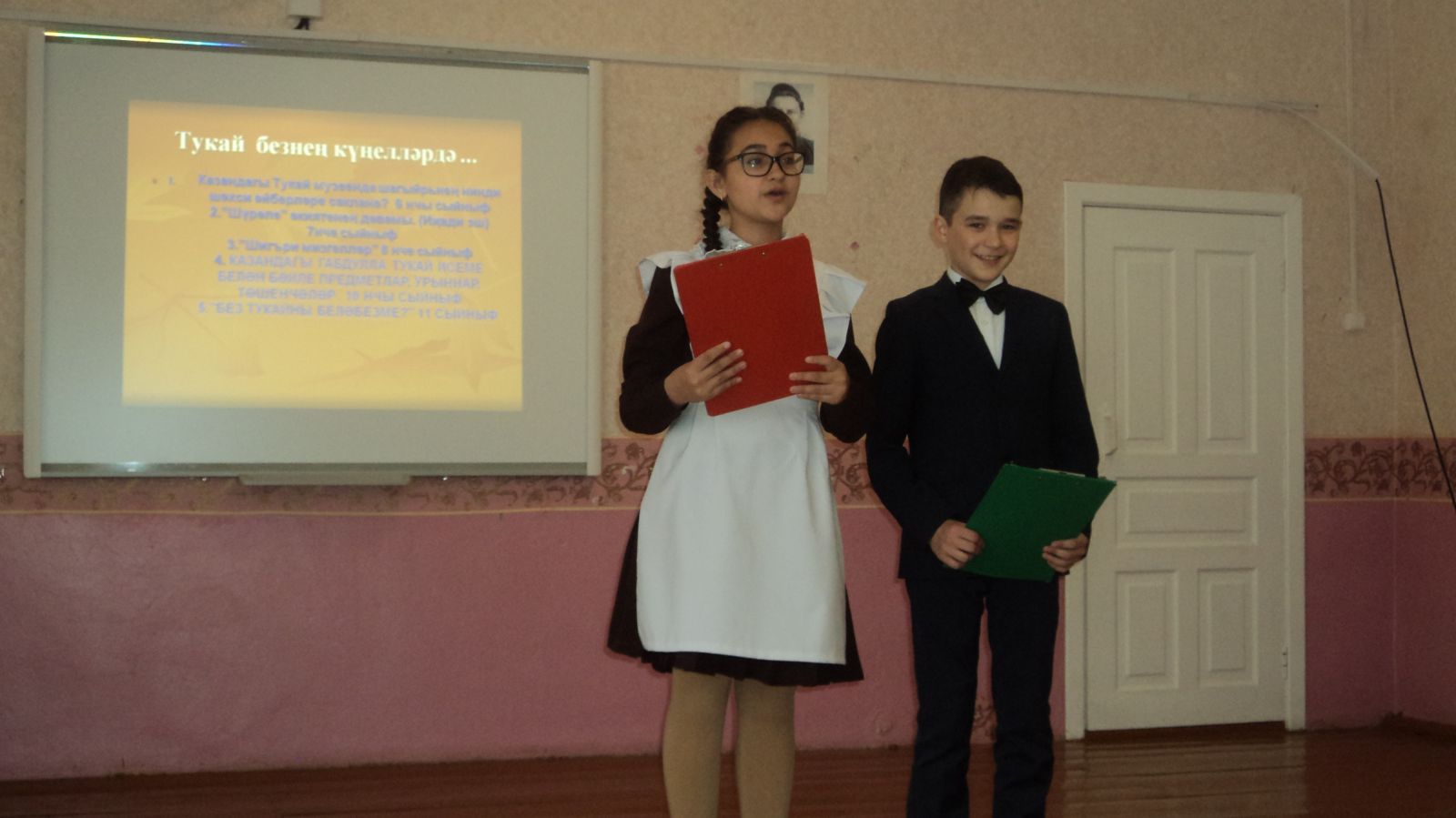 Бүген мәктәптә Тукай Көне булды. Укучылар көн дәвамында Габдулла Тукайга багышланган күргәзмә карадылар, аның тормышы, иҗаты буенча мәглүмат тупладылар, фикер алыштылар. Бәйрәм көне уңаеннан мәктәпкүләм чара да узды, аны татар теле һәм әдәбияты укытучылары Шайхетдинова Ә.Б. һәм Җиһангараева Т.Р. әзерләделәр. Чара “Туган тел” җыры белән тәмамланды.