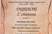 Диплом 2 степени и 2 диплома 3 степени в Межрегиональном конкурсе юных журналистов "Сила слова" 28.04.2026