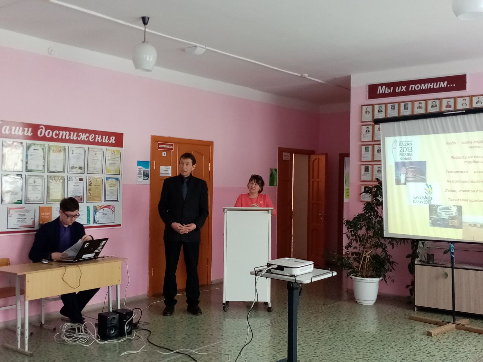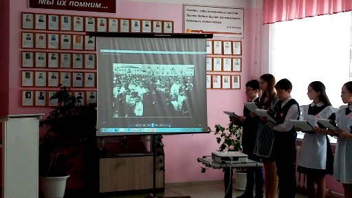 Далее Раиса Владимировна рассказала о дальнейших планах работы лицея. Обучающиеся 6 и 7 классов начали работу по созданию галереи портретов Героев Советского Союза - уроженцев Татарстана. Планируется создание галереи видеороликов "Я помню! Я горжусь!"