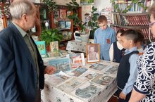 Әңгәмә барышында укучылар "Чернобыль корбаннары" исемле күргәзмә белән дә таныштылар. -