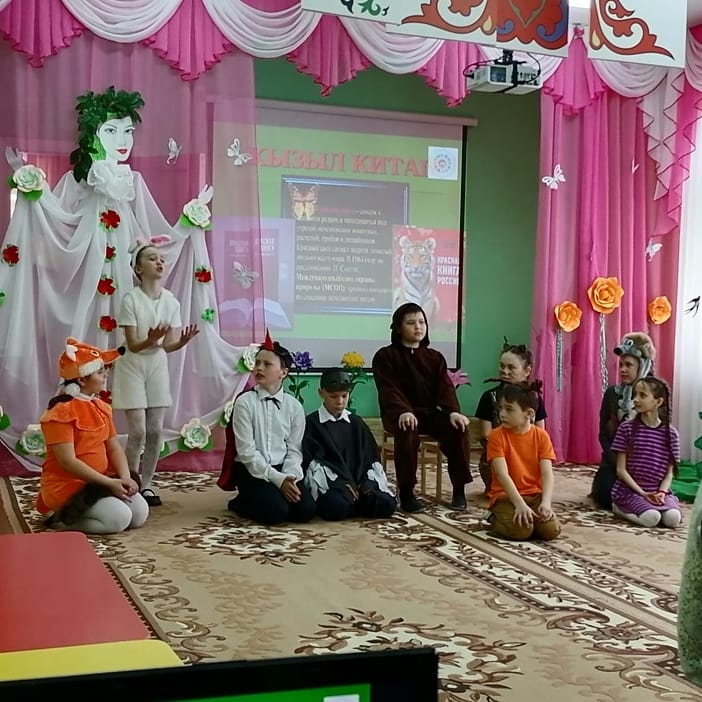 Сегодня учащиеся школы приняли участие в межрегиональном семинаре-практикуме для педагогов дошкольных образовательных учреждений по теме "Табигать язмышы - безнең язмыш", организованном в МБДОУ детском саду "Миляуша" села Терси. Ребята представили театрализованную сказку на тему "Хикмәтле "Кызыл китап". Целью выступления было призвать людей беречь природу и защищать животных.