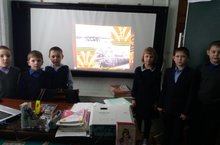 Учащиеся 5 А класса выступили с информацией" Карандаш как оружие". Учащиеся рассказали о писателях-участниках Великой Отечественной войны.Они почтили память погибших на войне поэтов. Прозвучали стихи М. Джалиля, Ф. Карима. Были представлены книги, в которых собраны проза и поэзия военных лет.