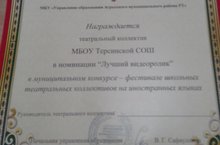 Безнең укучылар Ягъфәрова Айзилә, Саламатова Дарья, Насыйрова Самира мәктәп театр коллективларының конкурс-фестивалендә катнашып "Иң яхшы видеоролик"номинациясендә җиңеп чыктылар. Алар Алан Мильнның"Винни пух" әкиятеннән өзек күрсәттеләр. Аларны җиңүләре белән котлыйбыз һәм киләчәктә дә иҗади уңышлар телибез.