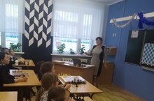Открытый урок по шахматам в 3 б классе провела Валиева Г. М. на тему "Мат. Решение задач в классе". Ребята угадывали загадки, поиграли в игру "Волшебный мешочек", показали умение чтения шахматных терминов, позиции.
