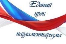 С целью развития гражданской ответственности, формирования правовой культуры, углубления знания школьников о роли и месте законодательной государственной власти в РФ 15 мая в школе прошёл Единый урок парламентаризма, который был посвящён 25-летию Совета Федерации Федерального Собрания РФ. В ходе урока учащиеся познакомились с историей, функциями и работой парламентариев на всех уровнях власти. Материал, использованный на уроке, взят с сайта www.Единый урок.рф. После просмотра видео была организована викторина между группами учащихся. Обсуждены следующие вопросы: 1.Где рождаются законы? 2. Сфера деятельности депутатов. 3. Система органов власти РФ .
