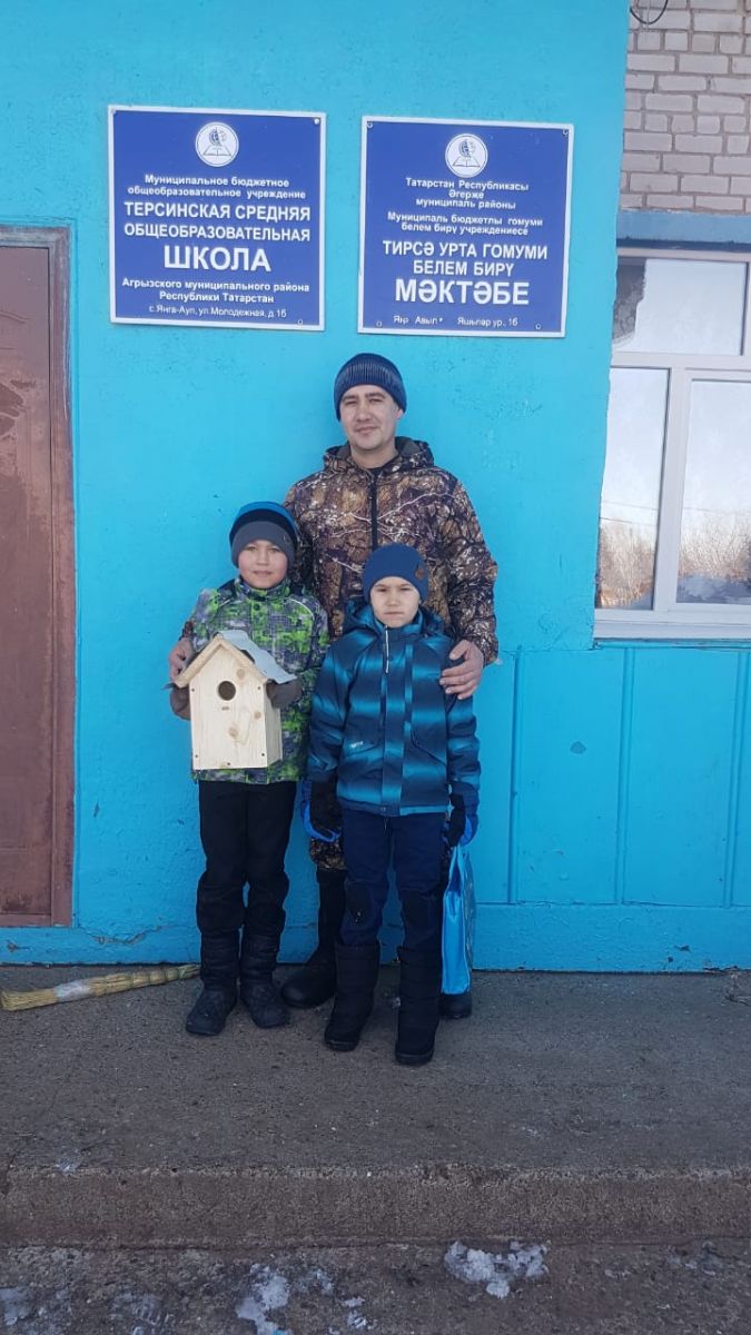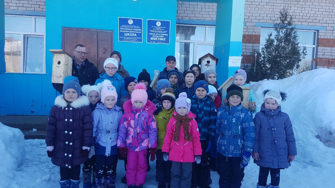 19 март көнне без сыерчыклар килүгә әзерләндек. Бу эшне әтиләрдән башка эшләп тә булмый. Алар безгә сыерчык оялары ясап та, куеп та бирделәр. Мәктәп тирәсе сыерчык оясына бай хәзер. Канатлы дусларыбыз, рәхим итегез, - дип сыерчыклра килүен түземсезләнеп көтәбез хәзер. Бу эштә әтиләребезгә зур рәхмәт белдерәбез.