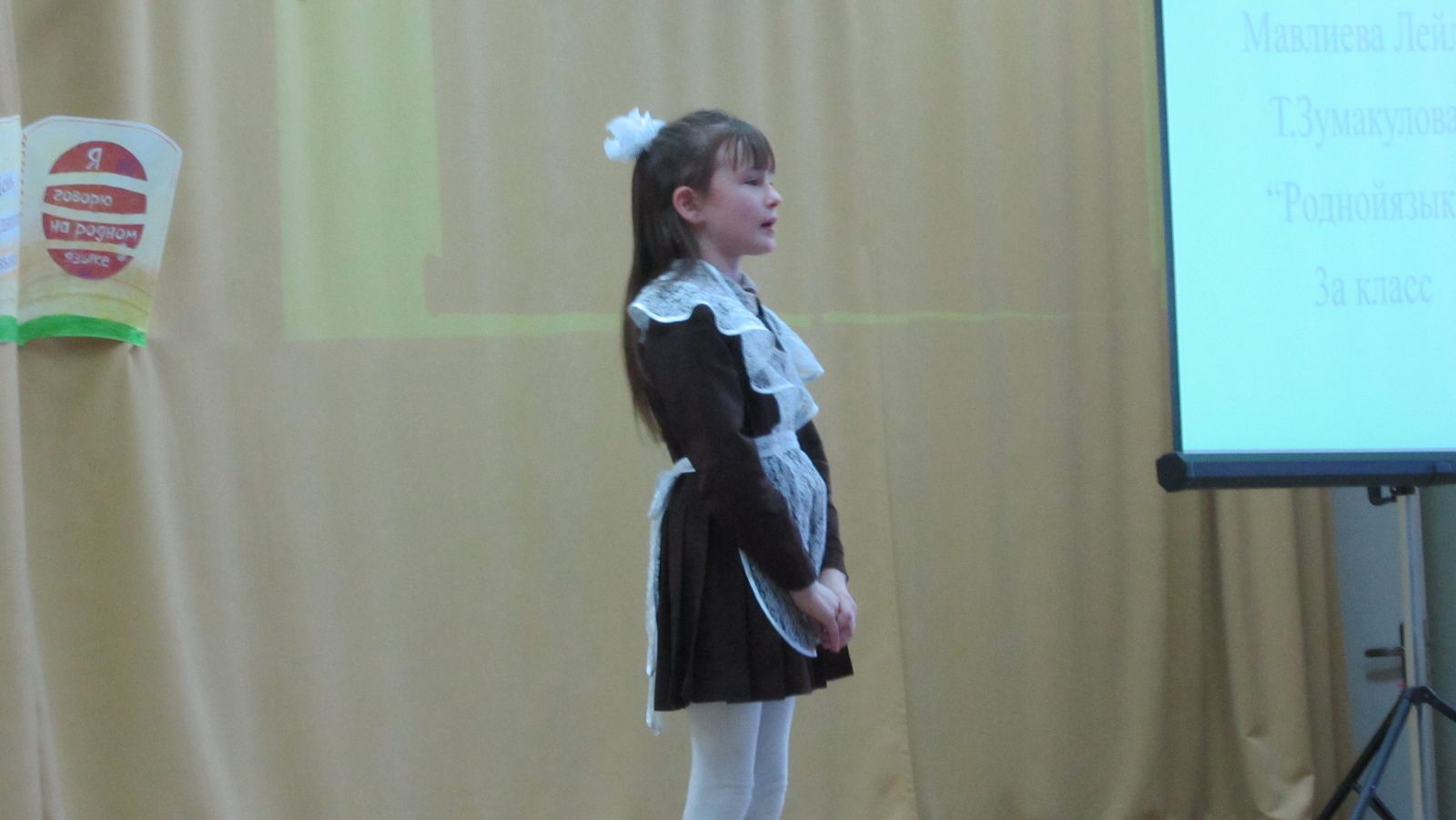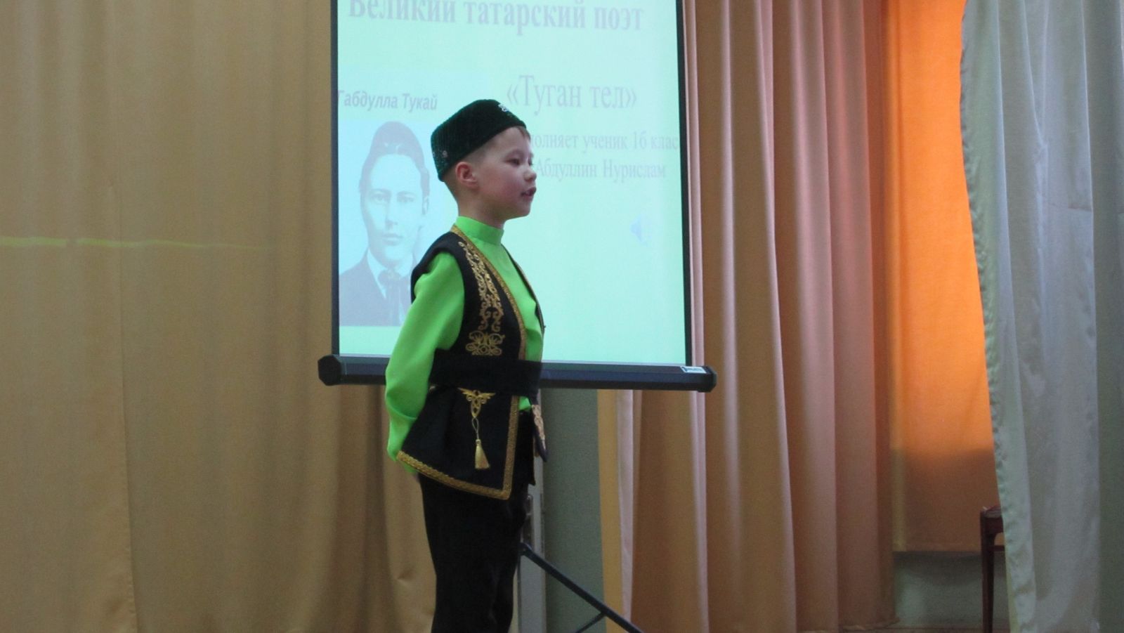 Бүген мәктәптә Халыкара туган тел көн уңаеннан “Дәверләрне ачар ачкычым бар-Рәхмәт яусын туган телемә” әдәби-музыкаль кичә уздырылды.Безнең мәктәптә татар, рус,удмурт, мари , үзбәк милләтенннән булган укучылар укый. Кичәдә төрле милләт укучылары үз туган телләрендә шигырьләр сөйләде, җырлар җырлады, үз халыкларының биюләрен башкарды. Бәйрәмдә туган тел турында бөек шагыйрьләребезнең шигырьләре яңгырады. Кичәдә юбиляр шәхесләр искә алынды.Бәйрәм кичәбез “Туган тел” җыры белән тәмамланды.