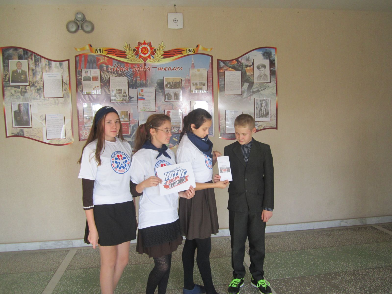 15.09.2016г. члены отряда «Новая волна» республиканского проекта «Самостоятельные дети» организовали акцию «Вместе против террора». Основной целью мероприятия является привлечение внимания к проблемам современного мира и главной угрозе человечества – терроризму. Терроризм относится к числу самых опасных и трудно прогнозируемых явлений современности, он приобретает всё более разнообразные формы и угрожающие масштабы, сеет страх и формирует чувство грозной опасности в большей степени, чем другие формы насилия.