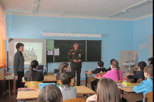 Руководитель ОБЖ Рашит Касимович провел общешкольный классный час на тему: "Закаляем свой характер, чтобы Родине служить" среди 5-11 классов.