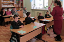 С 3 по 10 декабря идет декада инвалидов.В 1 классе прошел открытый классный час на тему: "Доброта и уважение". На классный час к ним пришла в гости бабушка Каримова Алмаза Зайнуллина Фируза Нигматовна инвалид II группы. Дети говорили о добрате, приводили примеры сказочных добрых героев и приводили примеры из жизни.