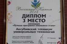 6 апреля в КСК КФУ «УНИКС» прошел гала-концерт творческого фестиваля среди студентов среднего профессионального образования Татарстана «Весенняя капель-2018». А так же состоялось церемония награждения победителей зональных этапов где приняли участие делегация нашего техникума и привезли диплом 3 место «Лучшая программа зонального этапа».