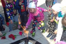 В канун Дня Победы , наши дети совершили экскурсию к Вечному огню.Дети вместе с воспитателем возложили цветы и почтили память паших минутой молчания.