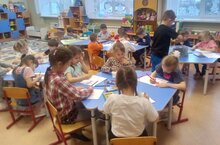 Воспитывали доброжелательное отношение к сказочным персонажам, сочувствие к ним и желание помочь.В конце занятия дети подарили им свои рисунки- колобочки.
