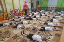 Прошло плановое занятие по физкультуре в старшей, подготовительной группе «Радуга». Общеразвивающие упражнения дети выполняли под музыку чётко, одновременно. При выполнении основных движений дети учились ходить по канату приставным шагом, держать равновесие и правильную осанку. Слышали команды воспитателя, выполняли все указания. Была проведена игра «Догони свою пару» для развития ловкости, быстроты реакции, внимания. Эмоциональный настрой на протяжении всего занятия был высокий.