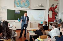 Героями не рождаются, героями становятся. В каждую эпоху на русской земле были, есть и будут настоящие герои. Молодое поколение должно знать имена своих героев, знать не по роликам в кино, а лично. Молодёжи нужны настоящие примеры мужества, героизма и беззаветного служения своей Родине. Сегодня в актовом зале школы состоялась встреча с Героем России, депутатом Госсовета РТ Баксиковым Р.Р. В ходе диалога с обучающимися он затронул тему героизма, любви к родине. Ребята узнали о подвиге экипажа российского танка Т-80 "Алеша". В своем выступлении Расим Баксиков говорил о добросовестной подготовке к школьным занятиям, о получении достойного образования, ответил на многочисленные вопросы о службе в ВС РФ и о многом другом, что интересовало школьников, собравшихся в зале.
