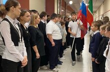 Начало учебной недели в школе началось традиционно с линейки, включающей церемонию вноса Государственного флага Российской Федерации и флага Республики Татарстан.