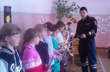 Сегодня состоялось занятие с воспитанниками детского сада и учениками начальных классов по знаниям правил дорожного движения.