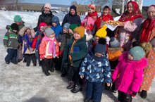 Сегодня воспитатели, совместно с работниками культуры провели весенний праздник, получивший несколько названий - "Сорок сороков", "День жаворонка", "День весеннего равноденствия". Весело и задорно пршел праздник. Дети водили хороводы, встречали Весну, плясали, играли. Кульминацией стал "прилет жаворонков" - вынос печенков в виде птиц