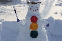 Вот такого оригинального светофорчика слепили детки на участке садика для участия в конкурск "Снежных скульптур по БДД"